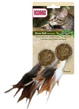 Kong Naturals Straw Ball with Feathers Cat Toy are made from natural, renewable resources. Kong Naturals Straw Ball with Feathers Cat Toy is designed to appeal to the natural instincts of the indoor cat. Kong Naturals Straw Ball with Feathers Cat Toy is specifically designed to appeal to your cat's desire to stalk and pounce. Your cat will find the natural feathers and catnip irresistible. The unique straw weave has a natural crackling sound, lots of nooks for easy snagging and its unpredictable roll adds to the fun.