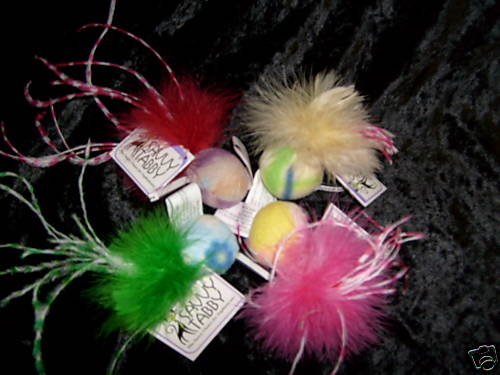 - Your cat will pounce on this plush ball with soft marabou accents.