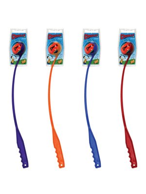 The Chuckit! is one sweet way to exercise your dog...without wearing out your arm. With the Chuckit! you can throw that ball out of the ballpark over and over again. Made of lightweight, durable plastic, the Chuckit! uses a standard-size tennis ball and is designed for hands-free pickup... so you NEVER have to bend down and pick up a slimy ball again. Use it in the park, in your backyard, or anywhere else with plenty of room. With a little practice you can consistently throw the ball 100 to 140 feet. PICK IT UP: Holding the handle of the Chuckit!, place the Ball claw over the tennis ball and press down firmly. The Chuckit! will grab the ball and hold on. Size: 26 inches long. Model: 06400