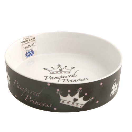 This Mason Cash Pampered Pet Cat Bowl is the perfect food or water bowl for your pampered princess. Black exterior with a white interior, each featuring a fun graphic design. Fine, gloss finish, inside and out. 5-1/2-inch diameter and 1-1/2-inch tall. Made from heavy stoneware, this bowl is durable, practical and difficult to tip over, it also maintains the food temperature longer and the thicker lip of the bowl is chip resistant. Dishwasher safe. Part of the Mason cash cane pet ware line. As iconic and recognizable as the cane mixing bowls, the cane pet ware has been in the range almost as long and is used by pets all over the world. Every item within the range has been specifically developed with pets and their eating habits in mind which is probably why Mason cash bowls are so high on the priority list of pet lovers. Mason Cash - high quality pottery, for over a hundred years.