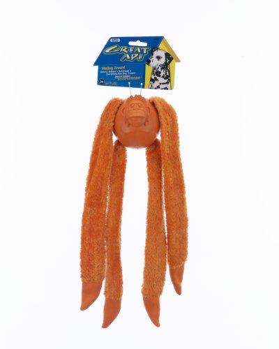 The new Great Ape from JW Pet is a combo toy that adds a fun new face to play time! This durable rubber ball is a funky monkey with strong swinging plush arms and legs – perfect for tugging, flinging, fetching, bouncing and monkeying around! Great for large and giant breeds!